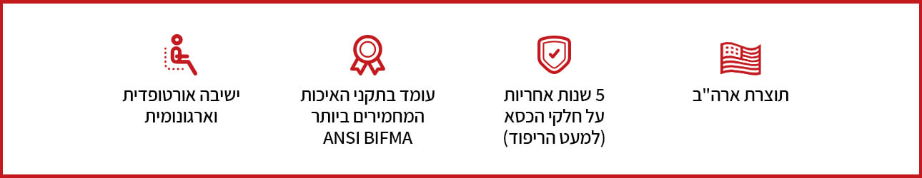 כל כסאות החברה הינם בעלי תו תקן BIFMA המחייב אמינות ועמידות לאורך זמן.