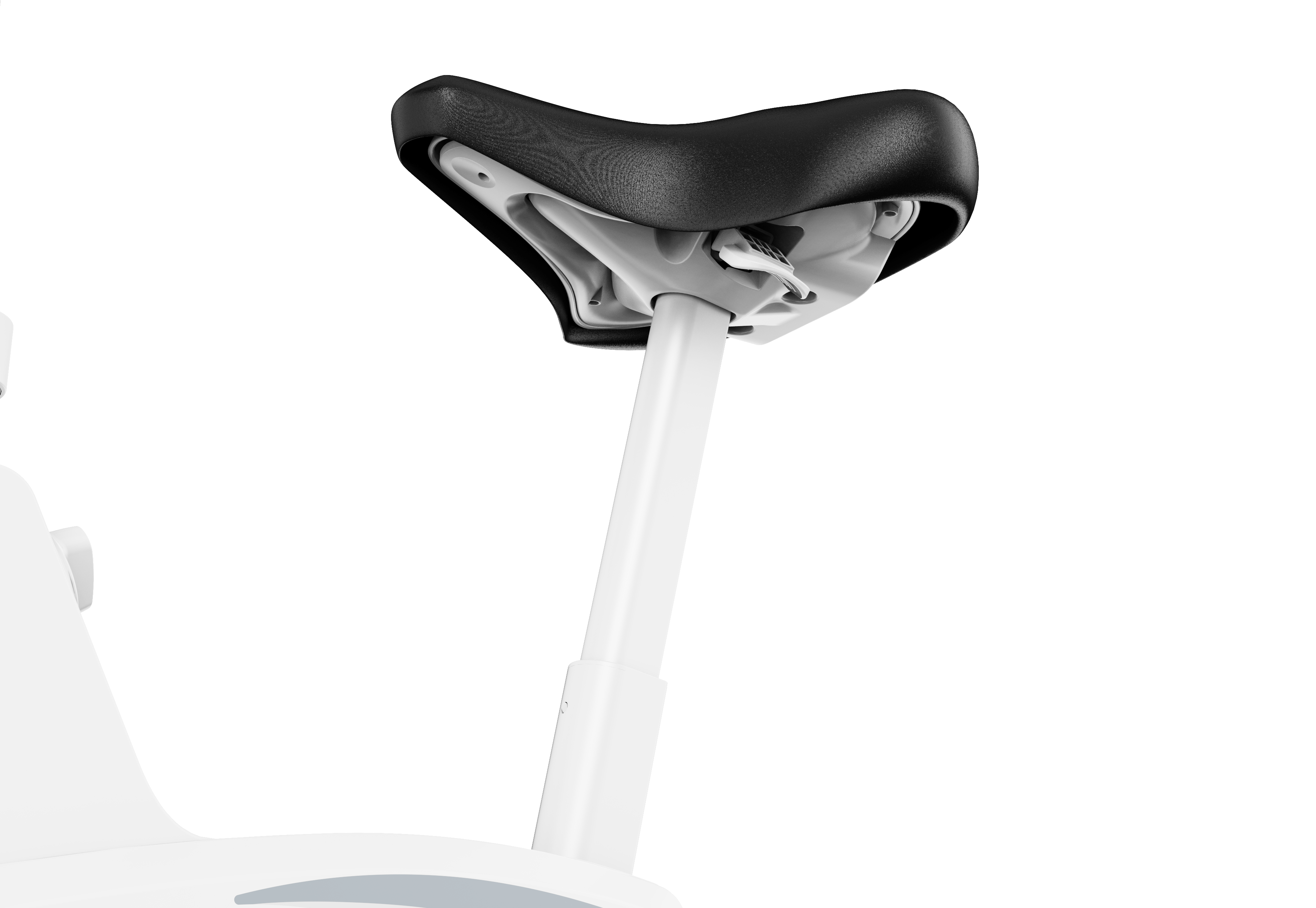 השולחן עולה ויורד לפי הגובה שלך, המושב מתכוונן בכפתור (בדיוק כמו בכיסא משרדי), וכל הפעילות שקטה לגמרי. יש גם מסך קטן שמראה לך כמה זמן רכבת, באיזה מהירות, וכמה קלוריות הספקת לשרוף.