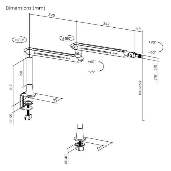 • אפשרויות התקנה: מלחציים לשולחן (Clamp) או חור מעבר (Grommet)