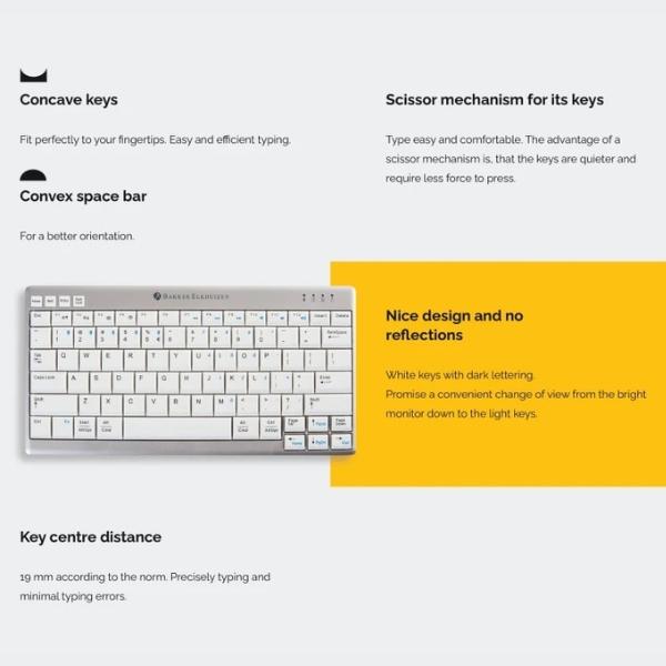 ה-UltraBoard 950 Wireless תוכננה על פי הדרישות הארגונומיות המחמירות ביותר. היא מצוידת במנגנון "מספריים" (Scissor mechanism) איכותי, מרחק מרכזי של 19 מ"מ בין המקשים ומבנה קעור המבטיח הקלדה נוחה, מדויקת ומינימום טעויות. בנוסף, היא כוללת מקשי קיצור , מקשי מולטימדיה מובנים ונוריות חיווי (LED) ליעילות עבודה מקסימלית.