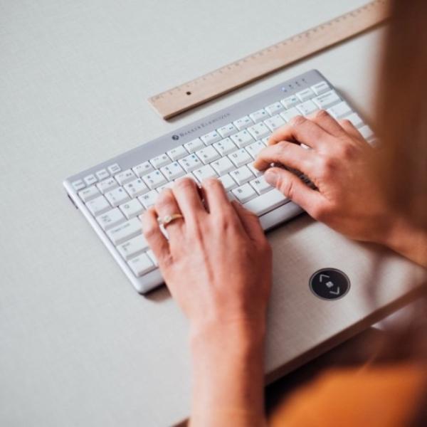 מקלדת אלחוטית קומפקטית לעבודה בריאה ויעילה בכל זמן ובכל מקום.